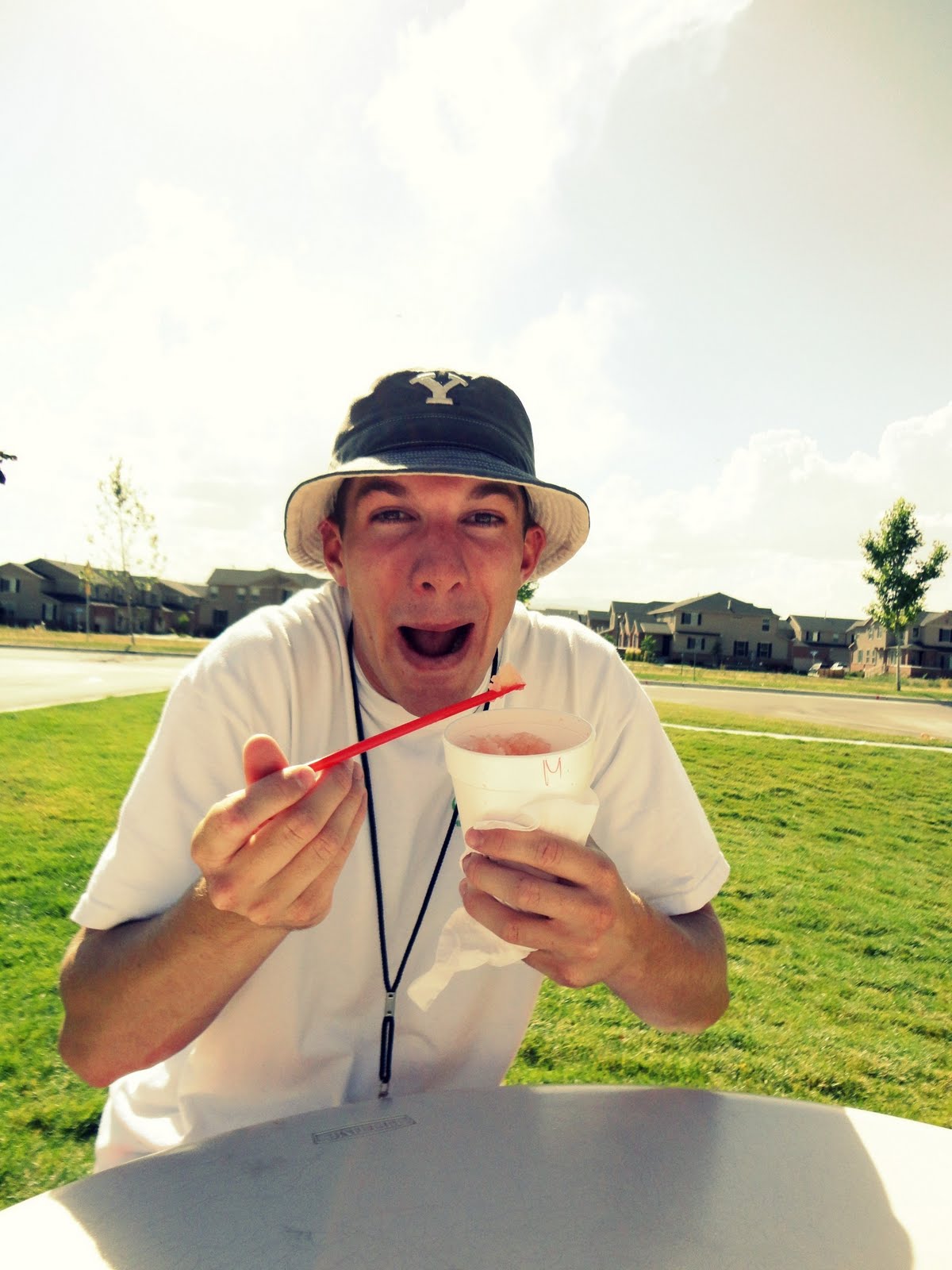 i haven't see this kid all summer. T. is so funny. he came and ate snow cones with us. we had a nice little chat.