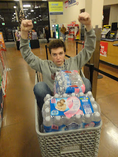 i had to go grab some water bottles because we didnt have any non soft water to drink so C. came with me. im not the only one that rides in a shopping cart.